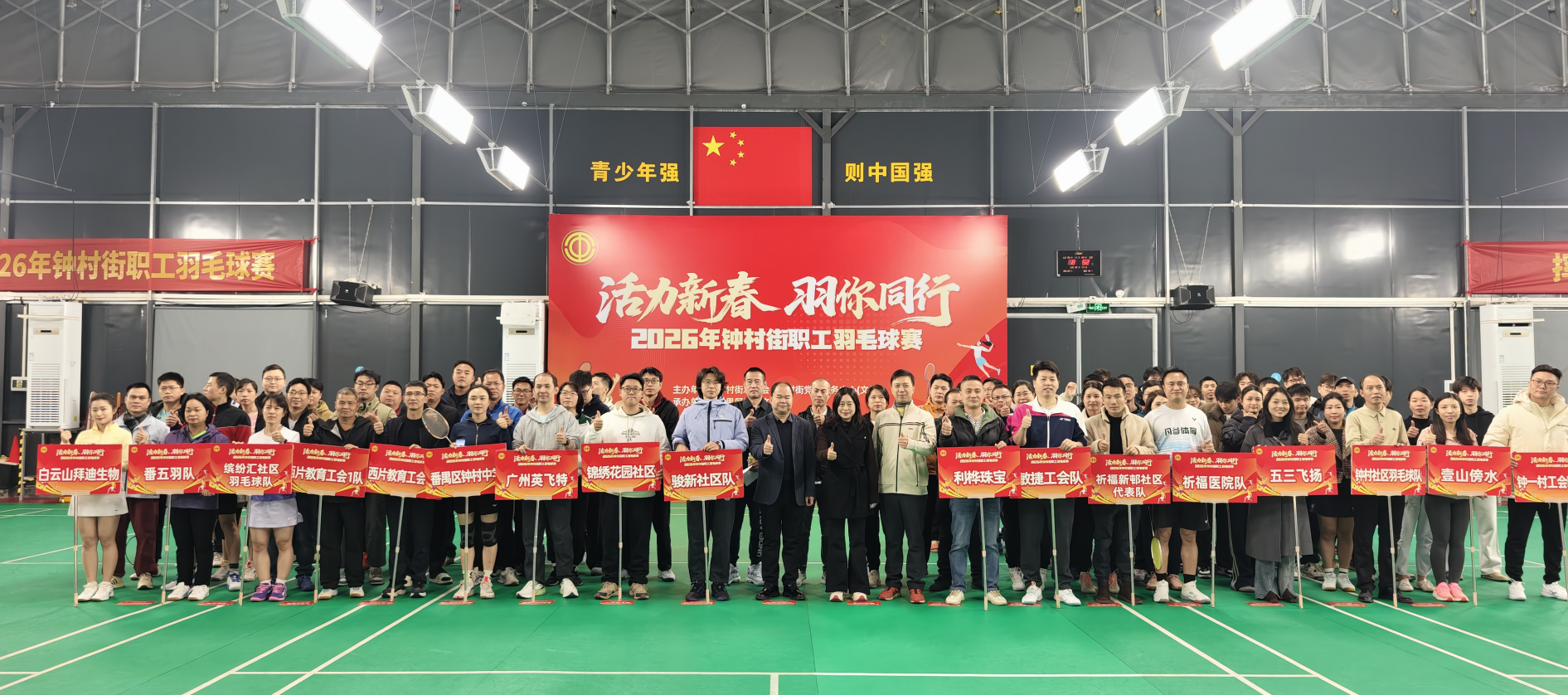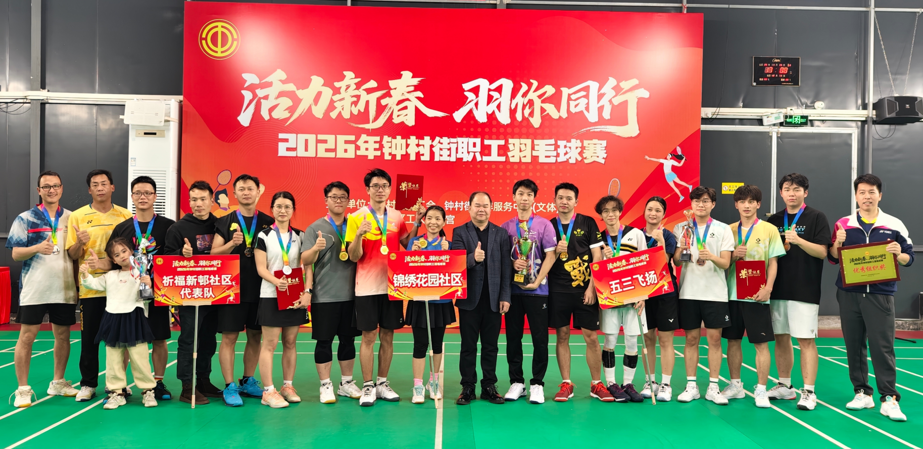 新春将至,羽球飞扬。为践行全民健身战略,丰富职工精神文化生活,落实服务职工、关爱职工的工作宗旨,1月25日,由钟村街总工会、钟村街党群服务中心联合主办,番禺区工人文化宫承办的“活力新春 羽你同行”2026年钟村街职工羽毛球赛,在雄峰城众兴羽毛球馆火热开赛并圆满收官。来自全街机关事业单位、村(社区)及辖区企业的17支代表队齐聚赛场,以球会友、奋勇争先,在挥拍跳跃间勾勒新春活力图景,展现钟村街职工昂扬向上的精神风貌。
