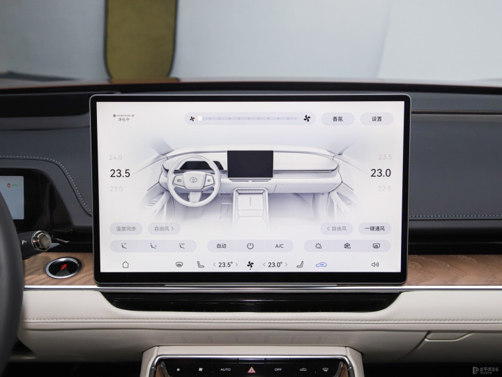 最后车载空调配置包括 NANOE-X 水离子发生器、等离子发生器、AQS空气质量传感器及PM2.5滤芯,可快速分解异味、细菌,实时净化空气;智能香氛系统支持6种香型切换,适配不同场景需求。