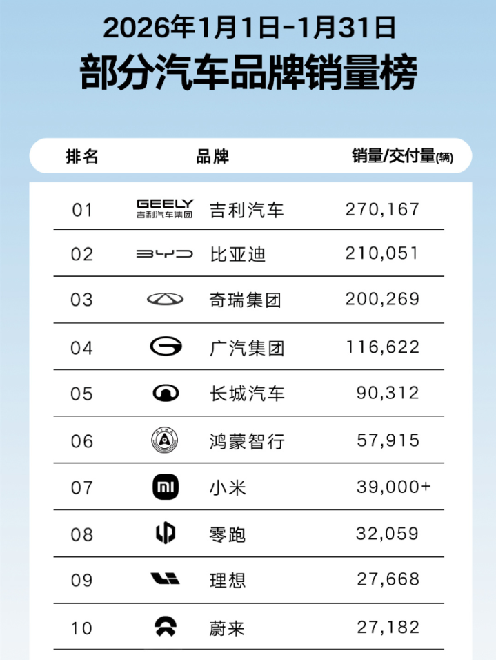 1月份,吉利销量27万,这是一个非常恐怖的数据。