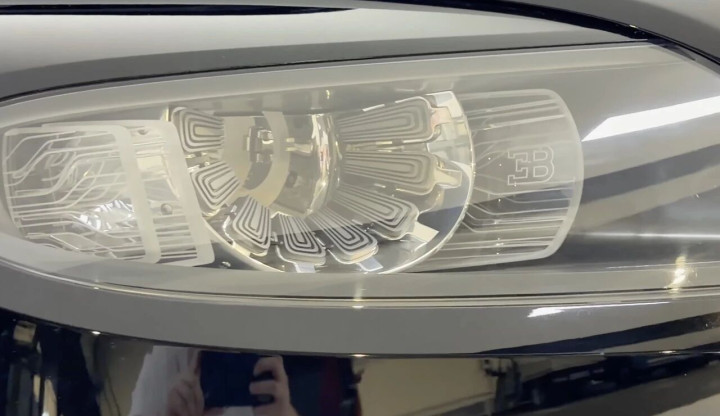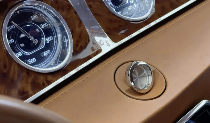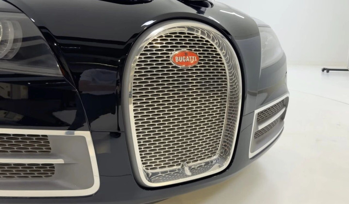内饰更是将奢华推向极端:大面积布加迪专属皮革、抛光实木、亮铝装饰,最夸张的是仪表台内嵌入一块可拆卸的帕玛强尼陀飞轮腕表,价值10万美元,既可当车载时钟,也能拆下来戴在手上。