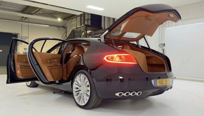 据布加迪前设计总监Achim Anscheidt后来透露,在漫长开发中,Galibier的车身不断加长、加高,为了实用性取消概念车的掀背尾门,改为小型后备箱。他直言:“侧面看像腊肠狗,后面看像戴圆顶礼帽的车。”设计美感大幅流失。
