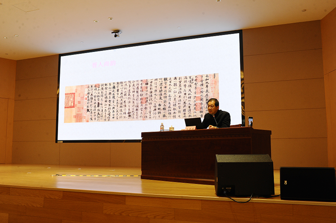 启动仪式后举办书法公益大讲堂。中国书协分党组书记马勇明以《走进书法世界》为题,为在场师生与书法爱好者带来了一场深入浅出的精彩讲座。他从“究书之本,品书之美,好书之益,习书之径”四个方面分享了四十多年研习书法的体悟。他谈到,书法,是中华文明独特的艺术形式,承载着中华民族的精神密码与审美理想,熔铸着中国人的生命哲思与文化意蕴,不仅有着重要的艺术价值,还承担着深沉的文化使命。书法是中国人的精神滋养,可以养浩然之气,积渊博之才,得天地灵性,纳万物菁华,创物我同心的大境。新时代书协工作应秉持“立心铸魂,守正融新,文墨辉映,共美致用”的理念,展现书协“传承文化,服务时代,滋养人心”的担当,推动书法艺术在新时代焕发新光彩。