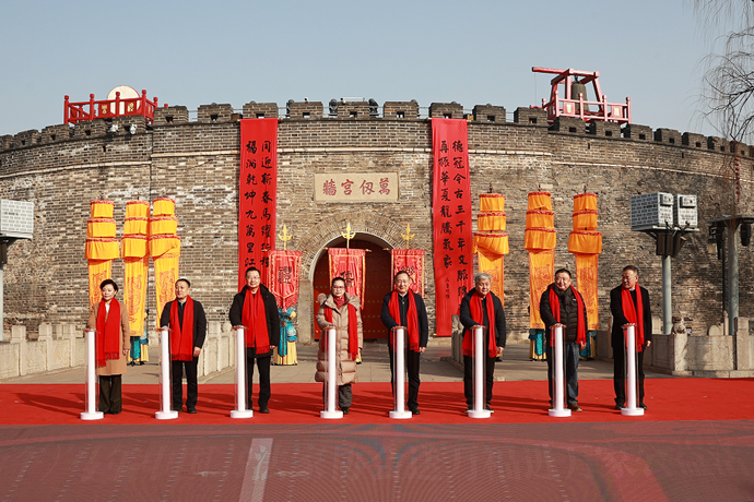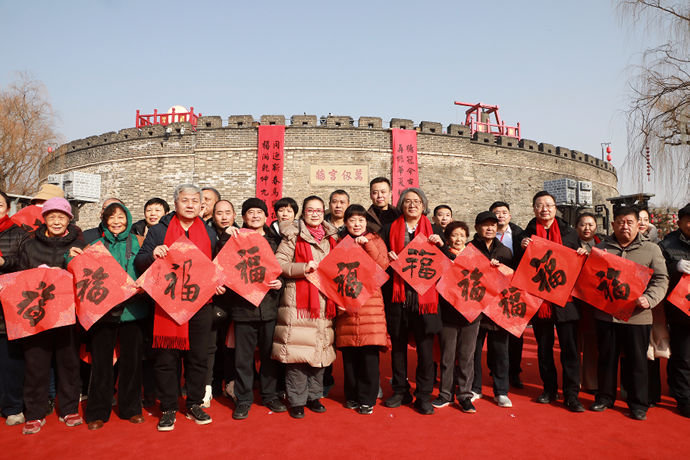 青砖巍峨,万仞宫墙,在冬日里焕发出别样生机。由马勇明先生撰拟、孙晓云先生书写的巨型红绸龙门对春联自墙顶垂落——“德冠今古三千年文脉绵延再振华夏龙腾气象;福满乾坤九万里江山焕彩同迎新春马跃征程”将马年新春的期许与中华文脉的厚重凝于字间,为活动拉开序幕。