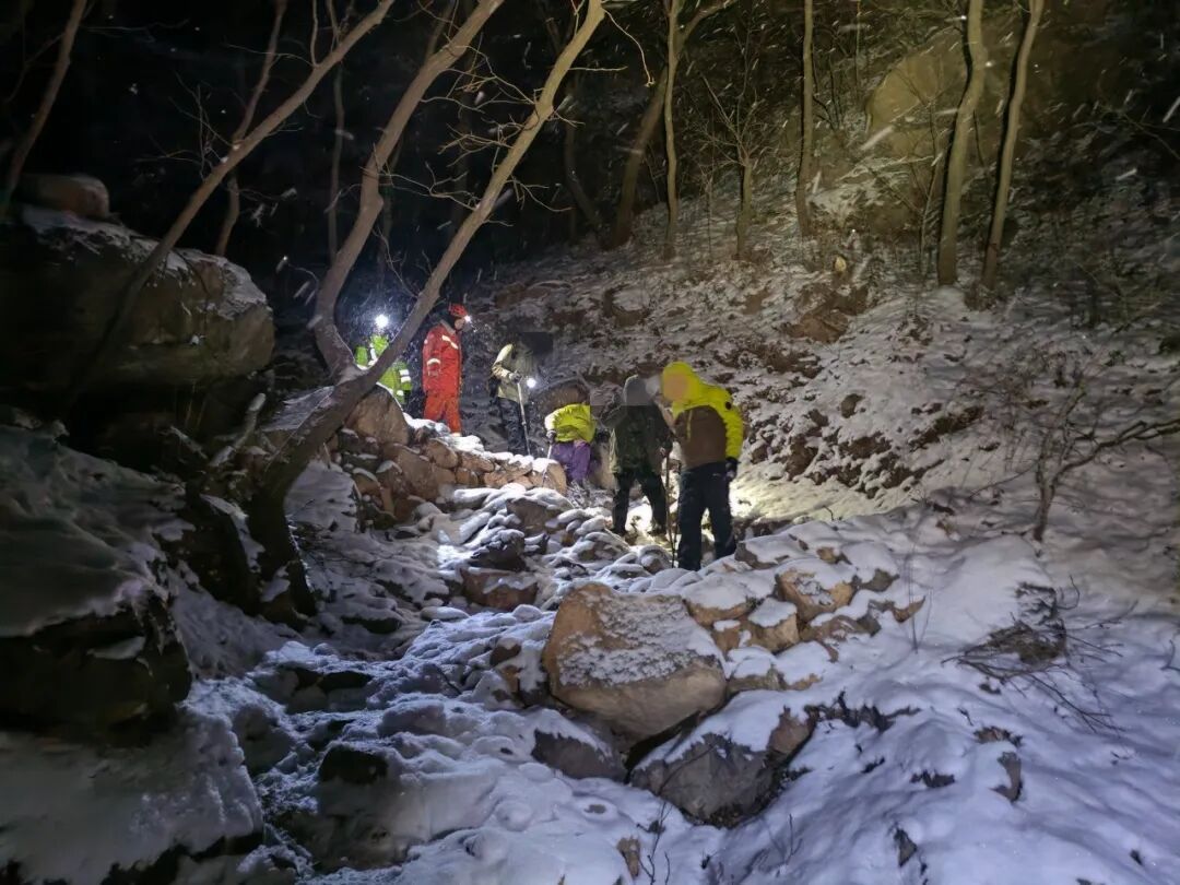 傍晚,降雪持续加大,门头沟区气象局连续发布寒潮蓝色、道路结冰黄色、暴雪蓝色预警,再加上深山里手机信号极其微弱,营救工作困难重重。