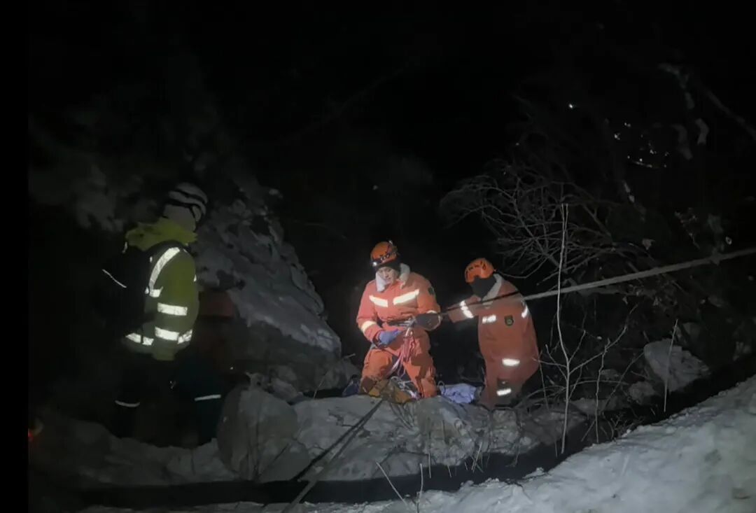 上山过程中,消防员背负着数十公斤重的装备物资,深一脚浅一脚地在雪地里艰难跋涉。1月18日凌晨2时许,救援队伍行进至距被困者四分之一路程处时,遭遇极端路况:山脊道路陡峭险峻,两侧皆是悬崖,而被困夫妻所在位置恰好在山谷部位,队伍无法继续安全通行。