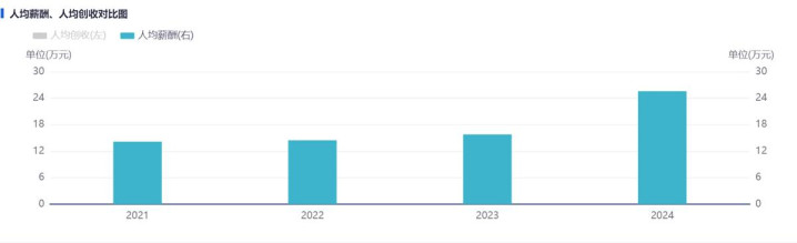 让星空君感到开心的是,公司的人均薪酬从2021年的14万元增加到了2024年的26万元,几乎翻了一番(2025年大概率还会增加)。